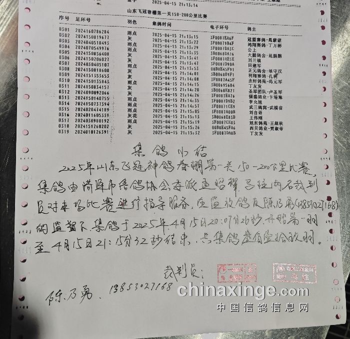 山东飞冠公棚第二关300公里 比赛扫描链接