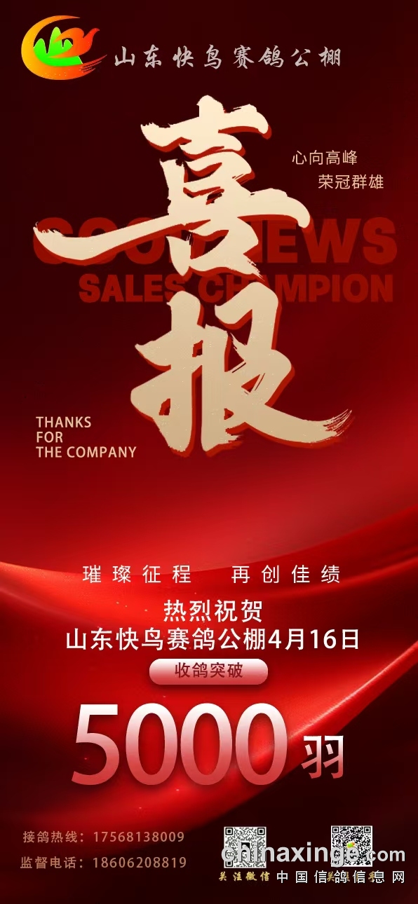 喜报!山东快鸟赛鸽公棚收鸽突破5000羽!