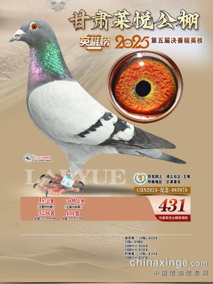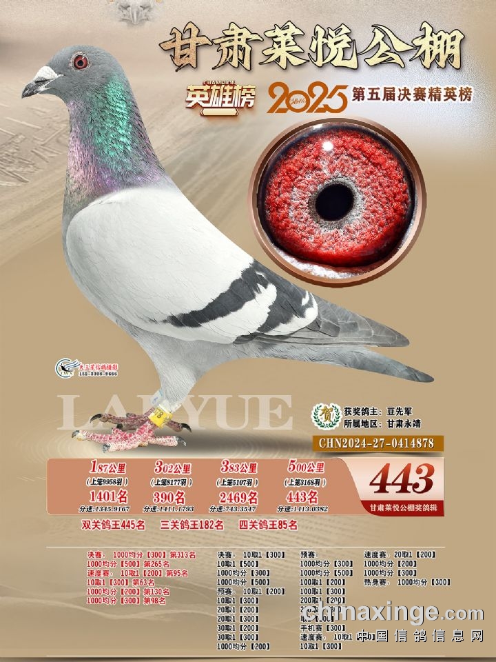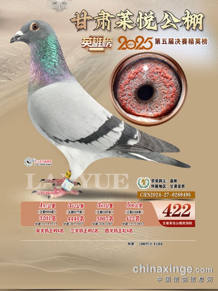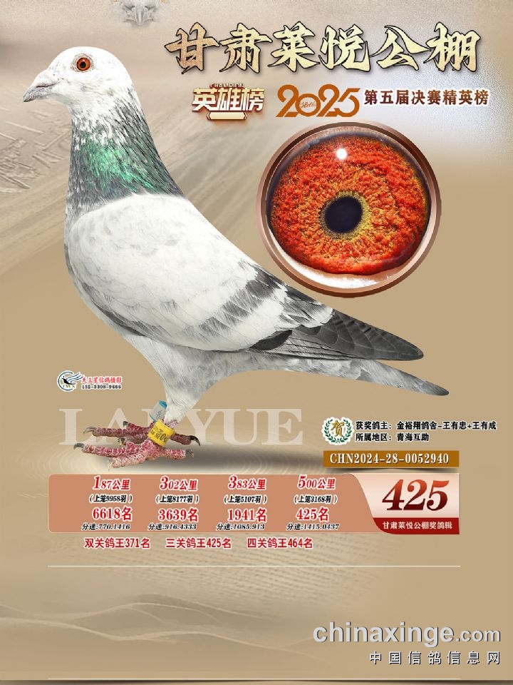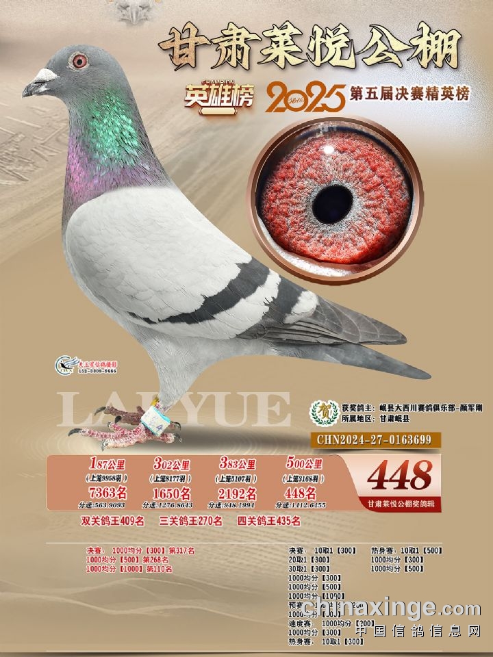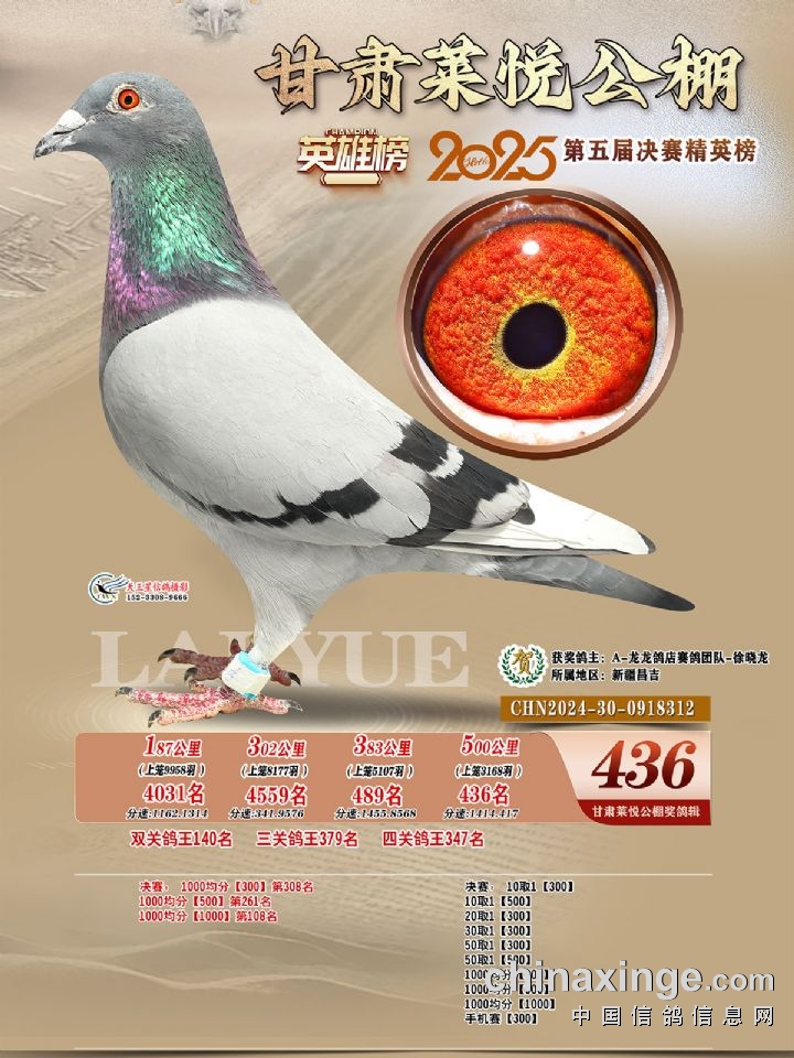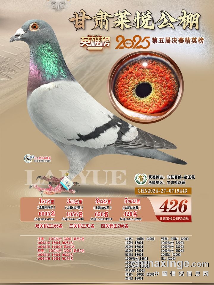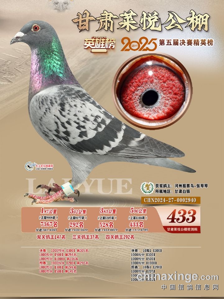 甘肃莱悦:2025年第五届决赛获奖鸽421-450名照片