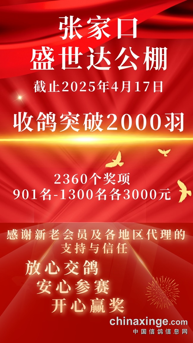 张家口盛世达公棚500公里决赛前900名获奖名单证明