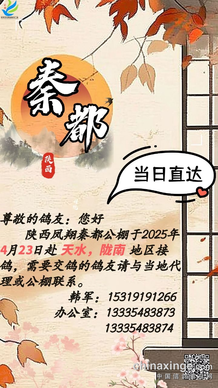 陕西凤翔秦都公棚4月23日赴天水,陇南地区接鸽通知