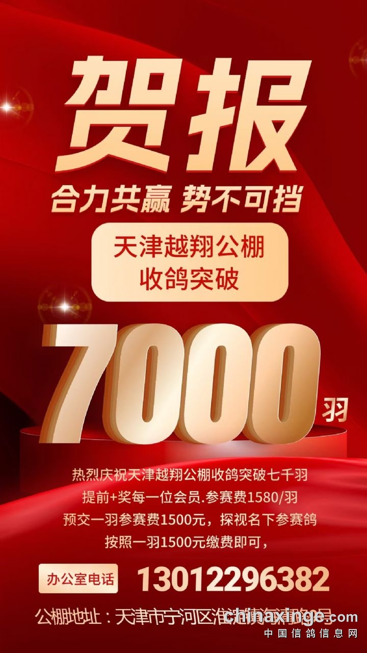 热烈祝贺天津越翔公棚收鸽突破7000羽,感谢广大鸽友及代理厚爱!