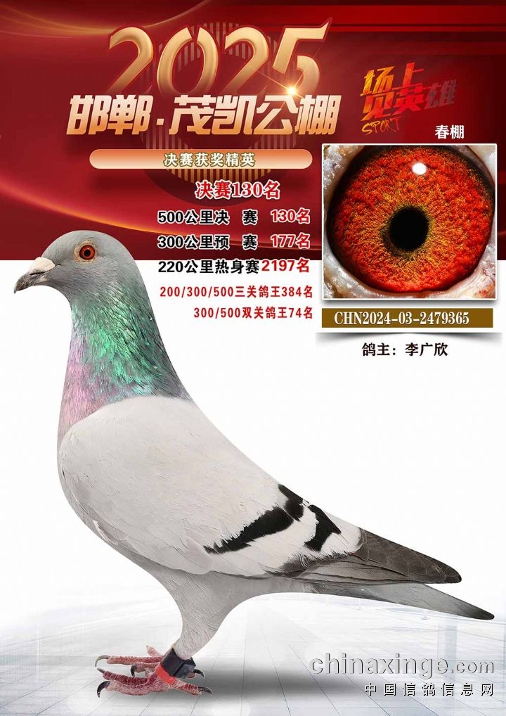 邯郸茂凯春赛500公里决赛冠军-30名优胜鸽鉴赏图