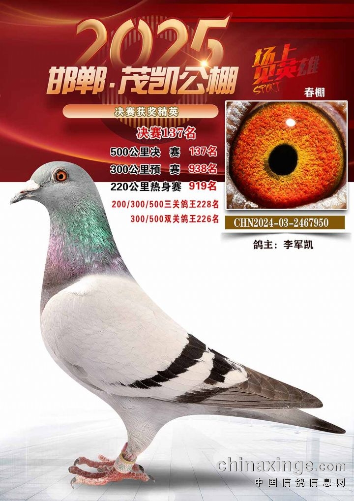 邯郸茂凯春赛500公里决赛211-240名优胜鸽鉴赏图