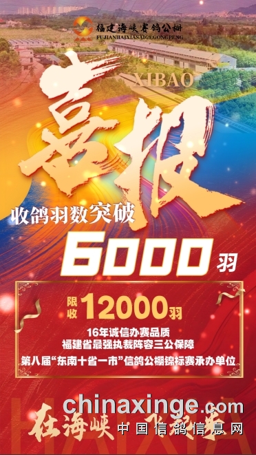 热烈庆贺福建海峡赛鸽公棚收鸽突破6000羽!