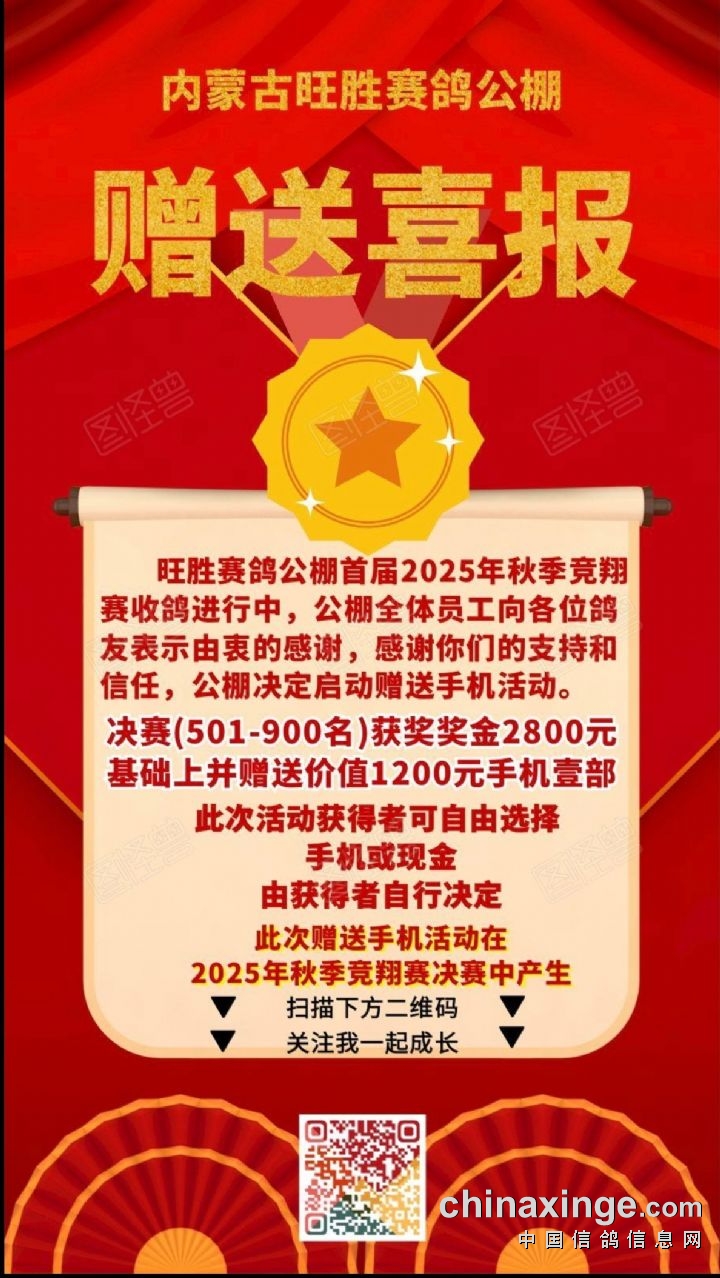 旺胜公棚2025年1-500名获奖鸽查看方式