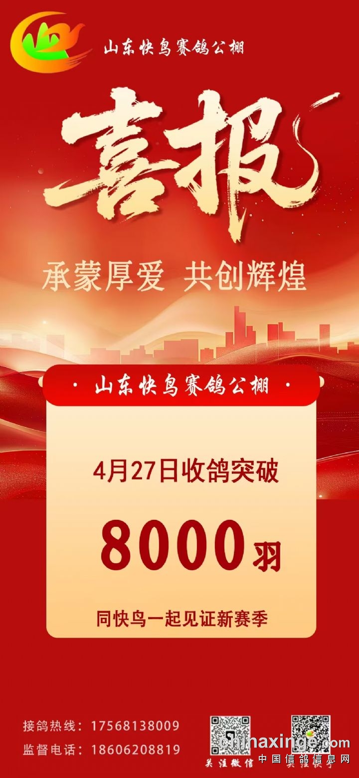喜报!山东快鸟赛鸽公棚收鸽突破8000羽!