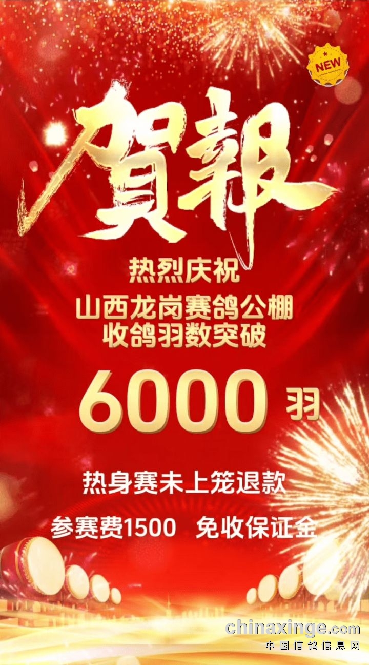 热烈庆祝:山西龙岗赛鸽公棚收鸽羽数突破6000羽!!