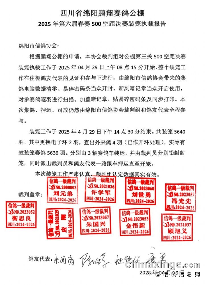 四川绵阳鹏翔公棚500空距第三关决赛上笼执裁报告