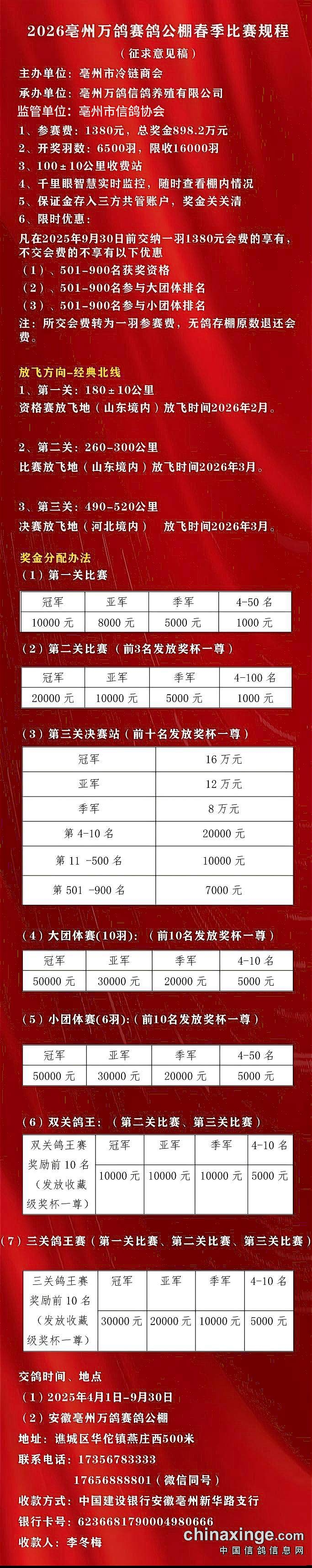 2026亳州万鸽赛鸽公棚春季比赛规程 (征求意见稿)