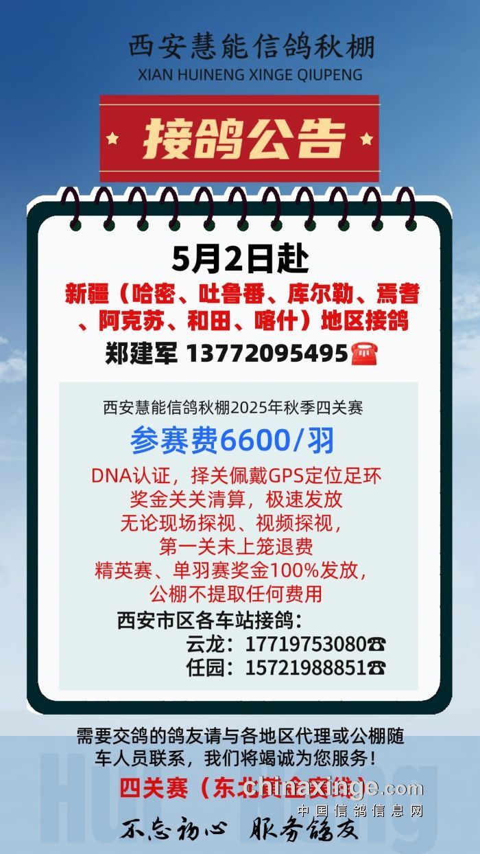 西安慧能信鸽秋棚新疆地区接鸽公告