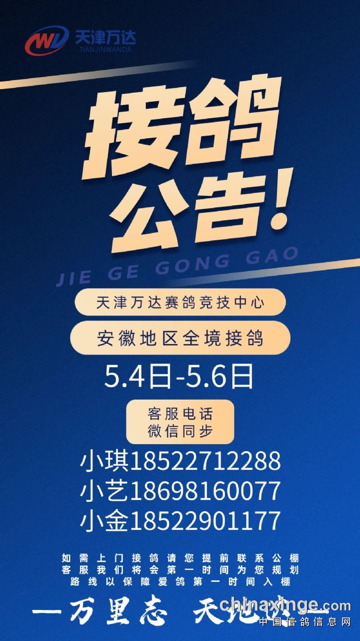 万达公棚5月4日-6日安徽全境接鸽