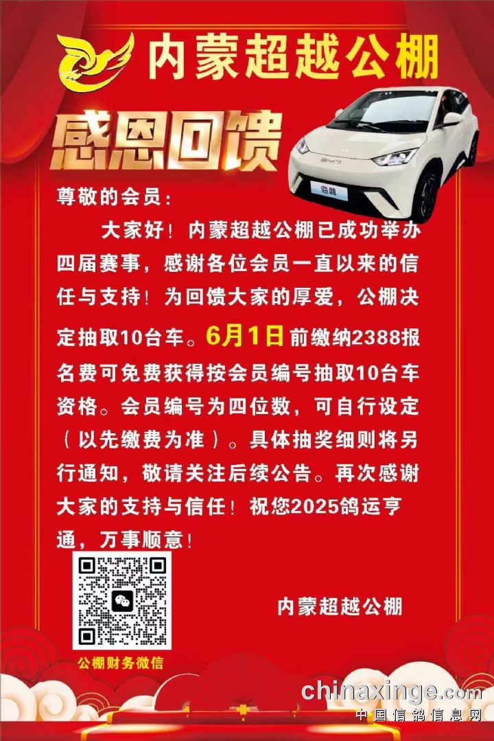 内蒙超越公棚(送呼市,土右、土左、达旗、鄂尔多斯地区迟归鸽)通知
