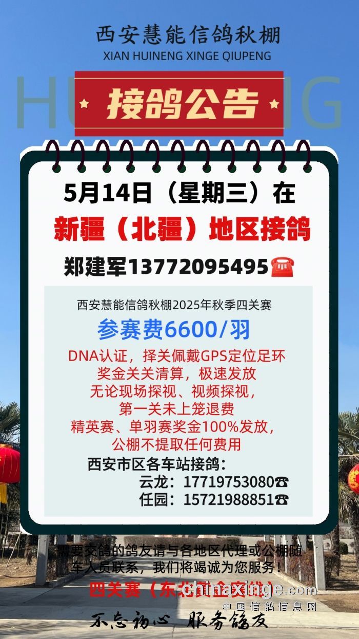 西安慧能信鸽秋棚5月14日在新疆(北疆)地区接鸽公告