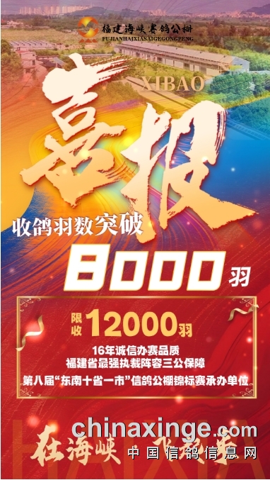 热烈庆贺福建海峡赛鸽公棚收鸽突破8000羽!