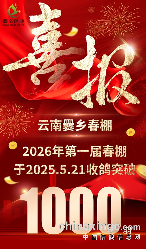 喜报:云南爨乡春棚截至 2025年5月21日收鸽突破1000羽