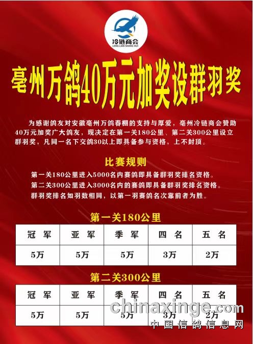 亳州万鸽40万元加奖设群羽奖