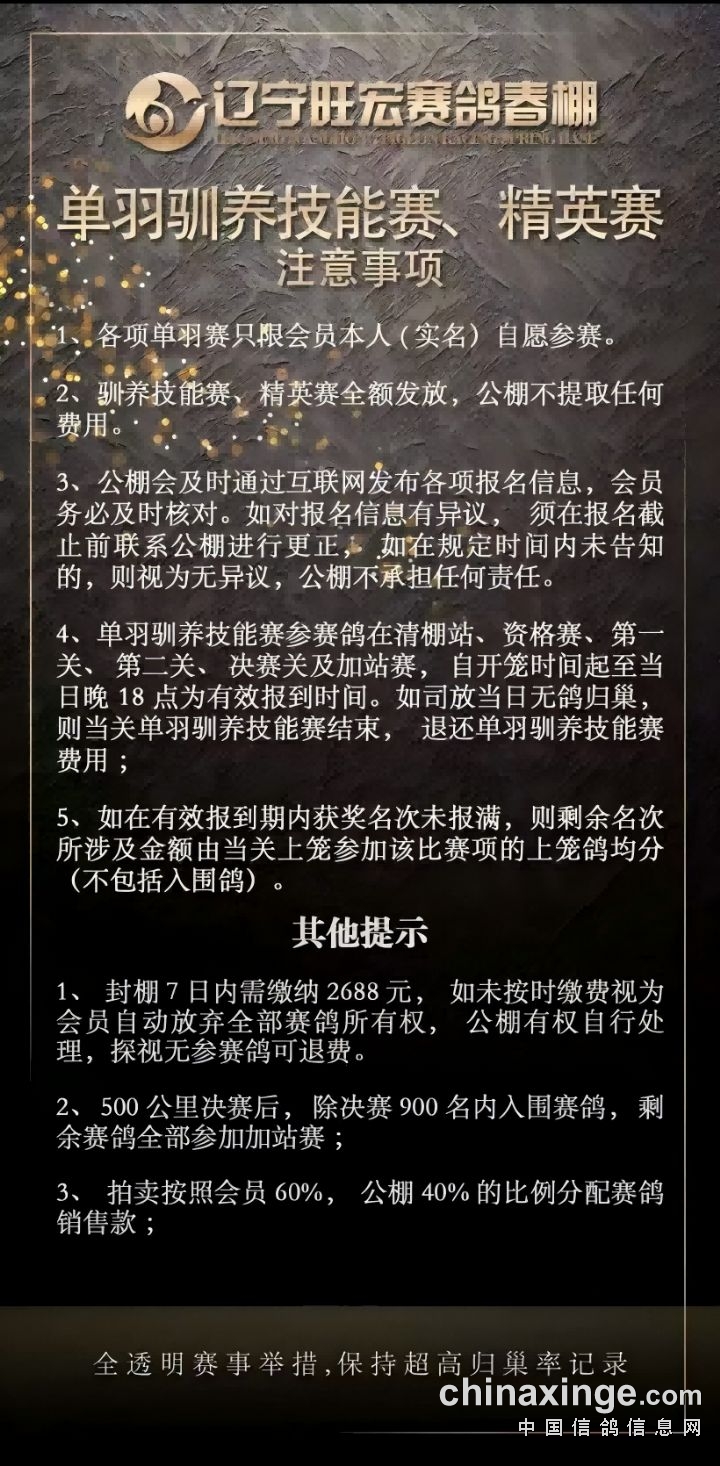 辽宁旺宏春棚:2026年第三届春季竞翔规程(简版)