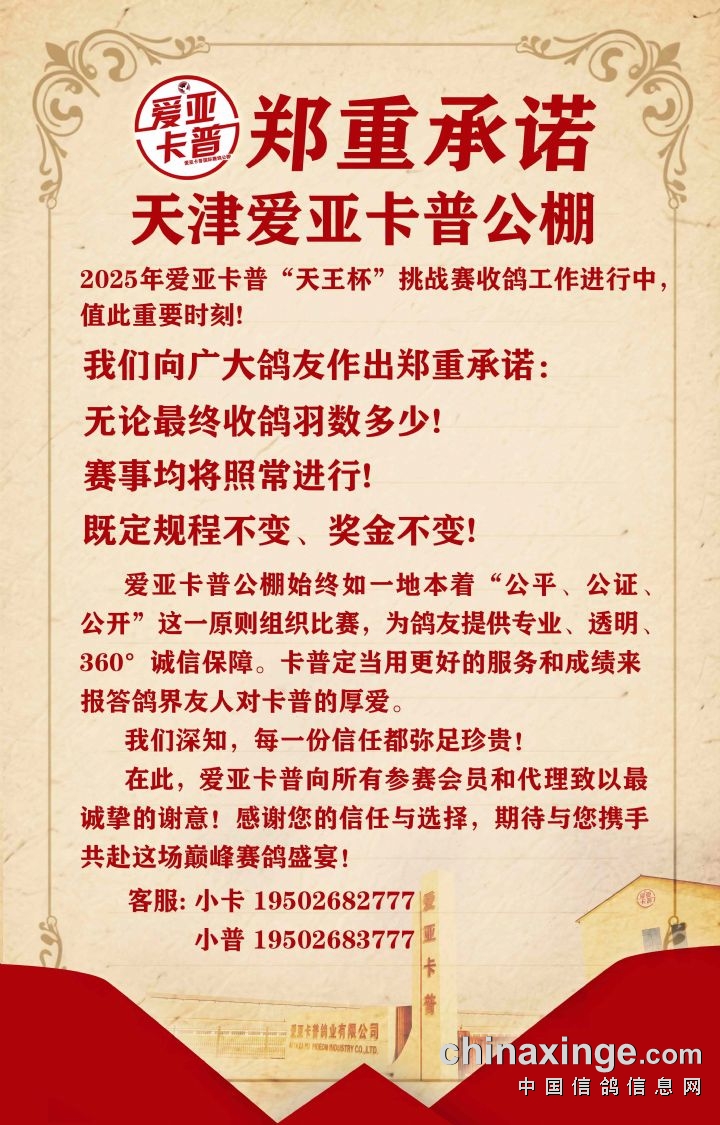 2025爱亚卡普“天王杯”挑战赛预赛开笼通知