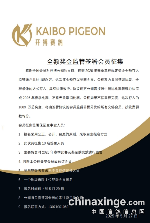 开搏公棚热身赛比赛公告(4月5日集鸽)