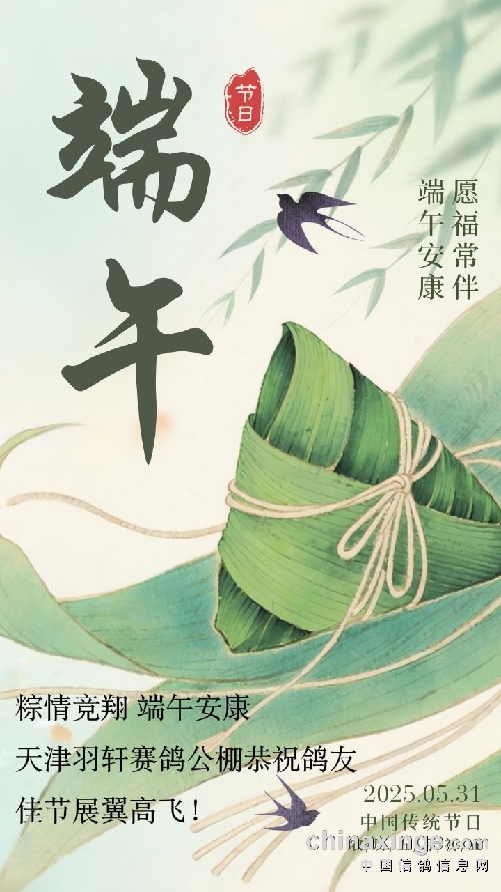 天津羽轩赛鸽公棚恭祝全国鸽友端午安康