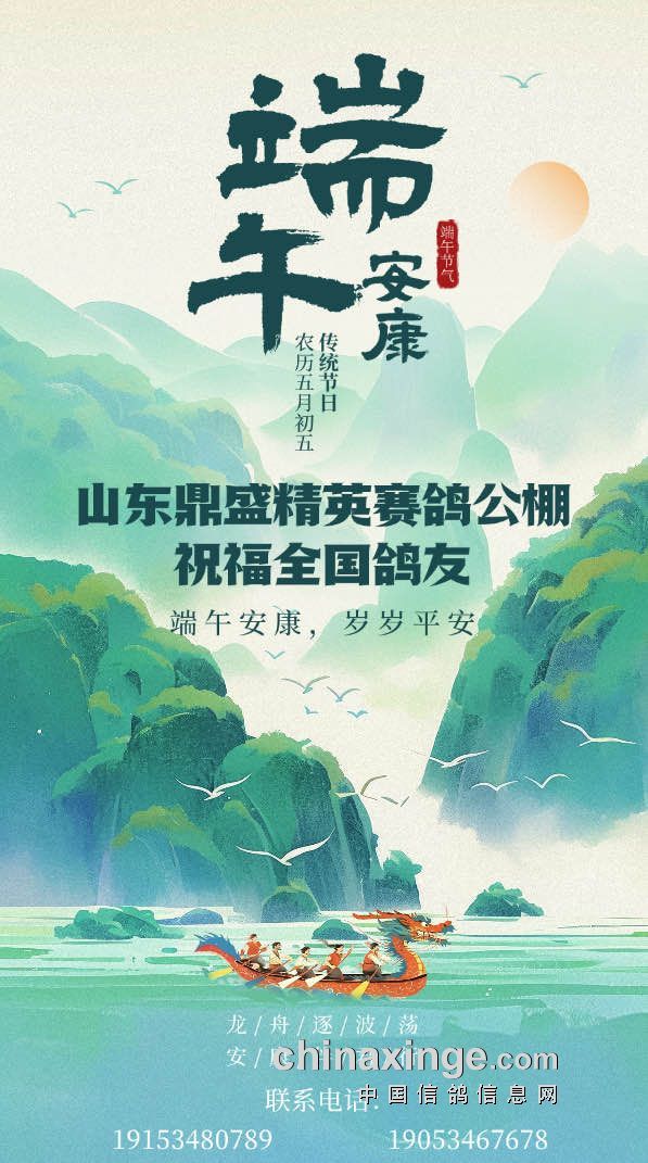山东鼎盛精英赛鸽公棚祝全国鸽友端午节安康!