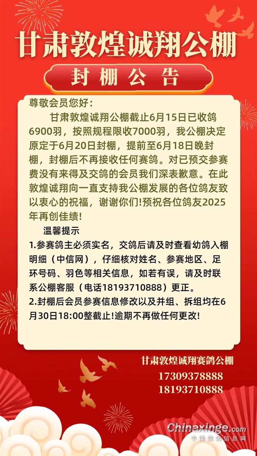 甘肃敦煌诚翔公棚封棚公告