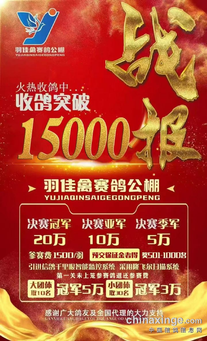热烈祝贺:甘肃羽佳禽赛鸽公棚收鸽突破15000羽!