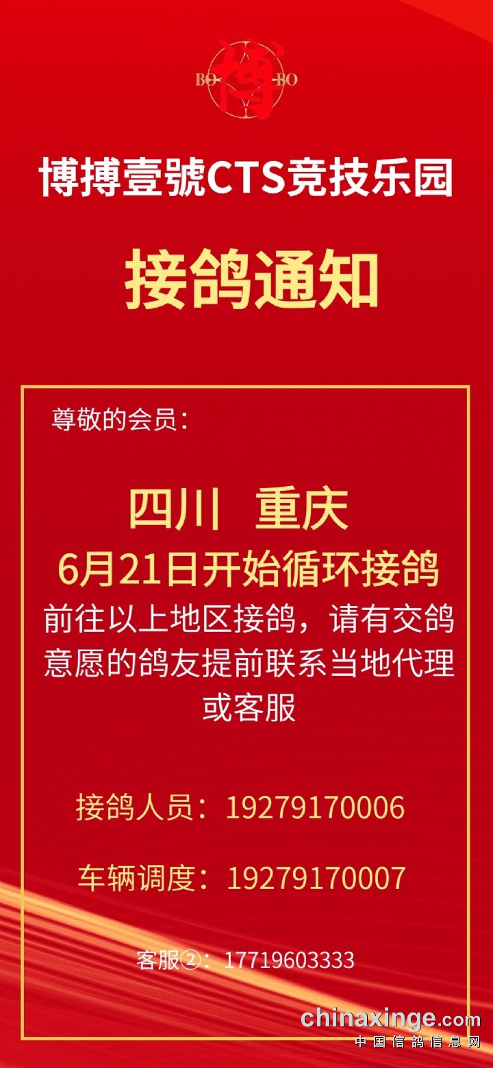 博搏壹號春晓队四川、重庆6月21日开始循环接鸽公告