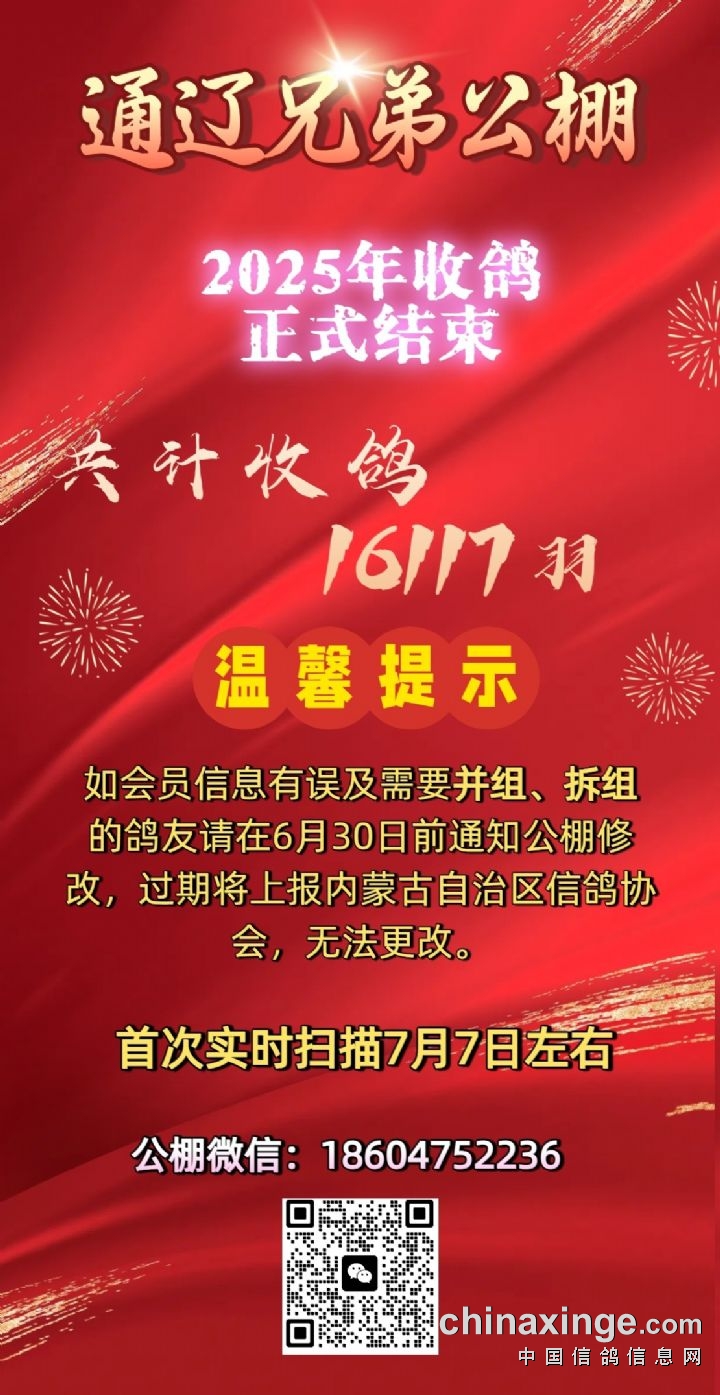 通辽兄弟公棚550公里第二关比赛集鸽通知