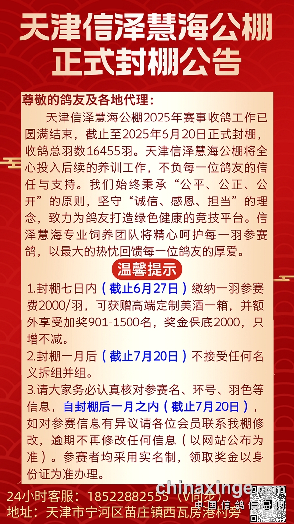 天津信泽慧海公棚180-200公里热身赛开笼及直播公告