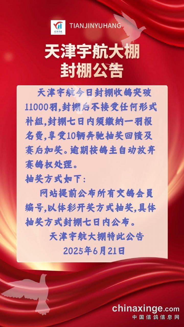 天津宇航VIP大棚(第三站)5公里训放通知及数据直播链接