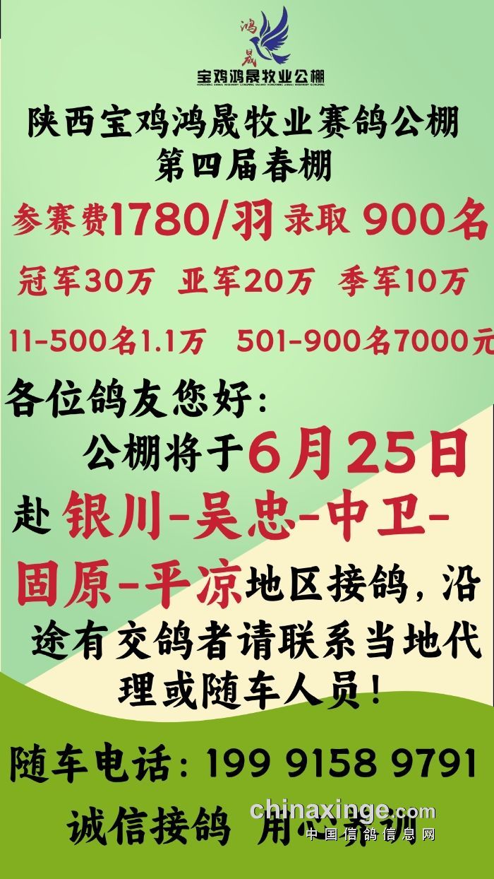 6月25日赴宁夏银川、平凉等地接鸽公告