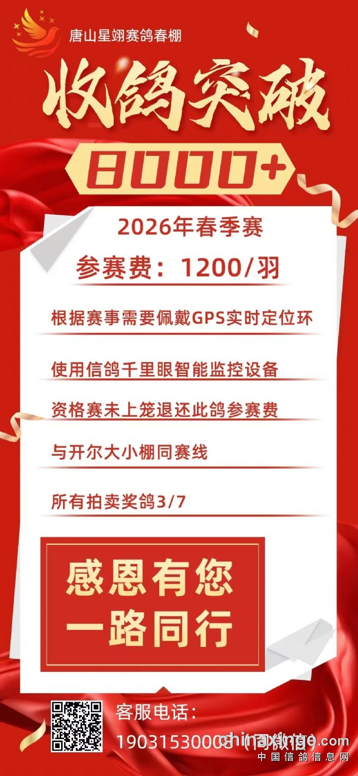 唐山星翊公棚春棚收鸽突破8000羽,单日破千!!!
