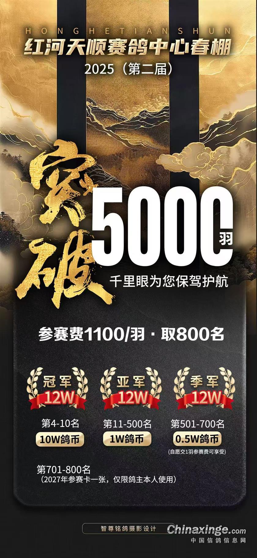 云南红河天顺赛鸽中心2026年第二届预交参赛费