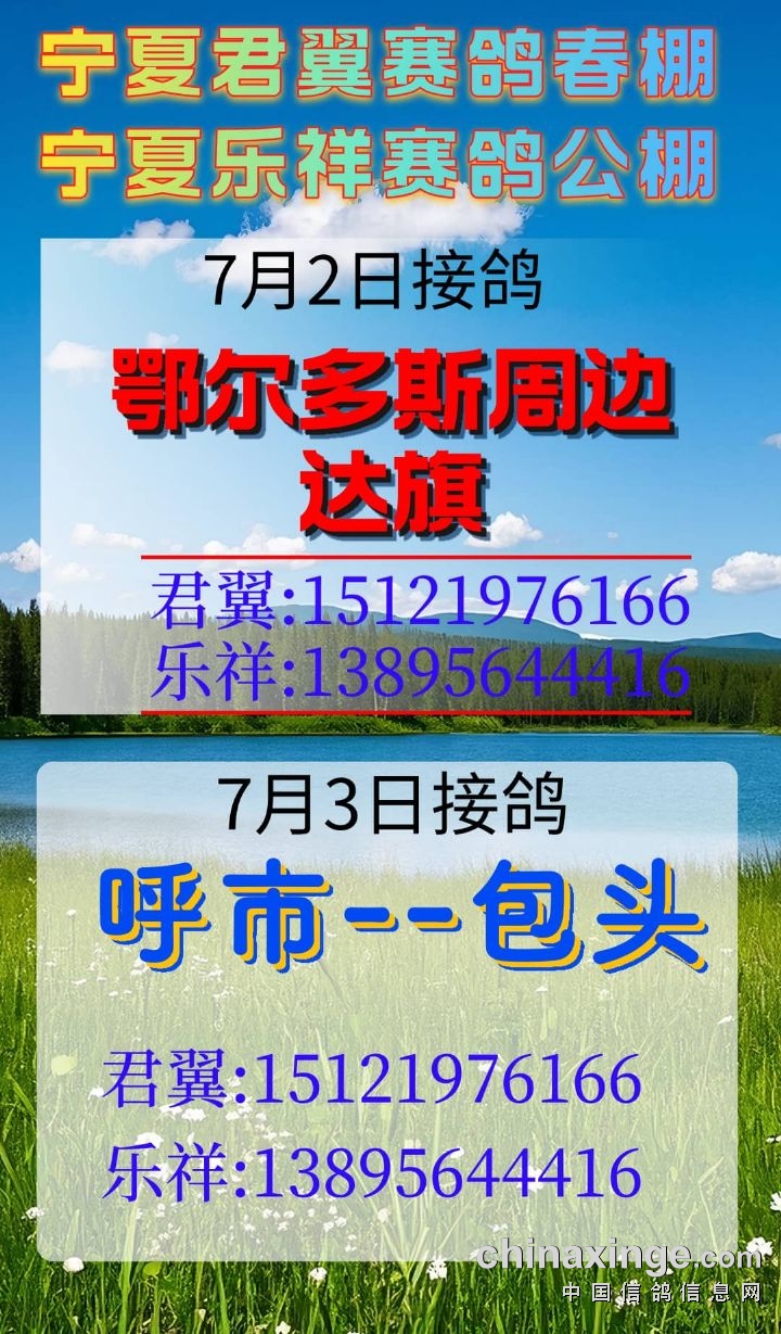 宁夏君翼赛鸽公棚(春棚)7月2日-3日内蒙接鸽路线