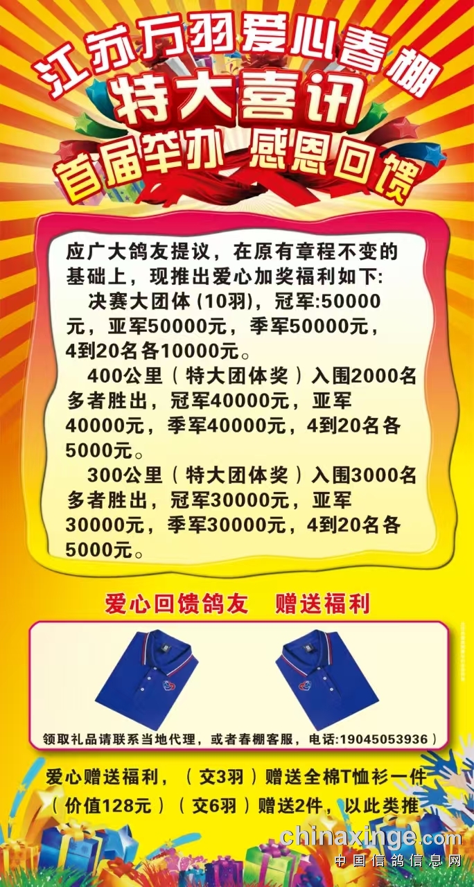 江苏万羽爱心公棚:首届举办 感恩回馈加奖公告