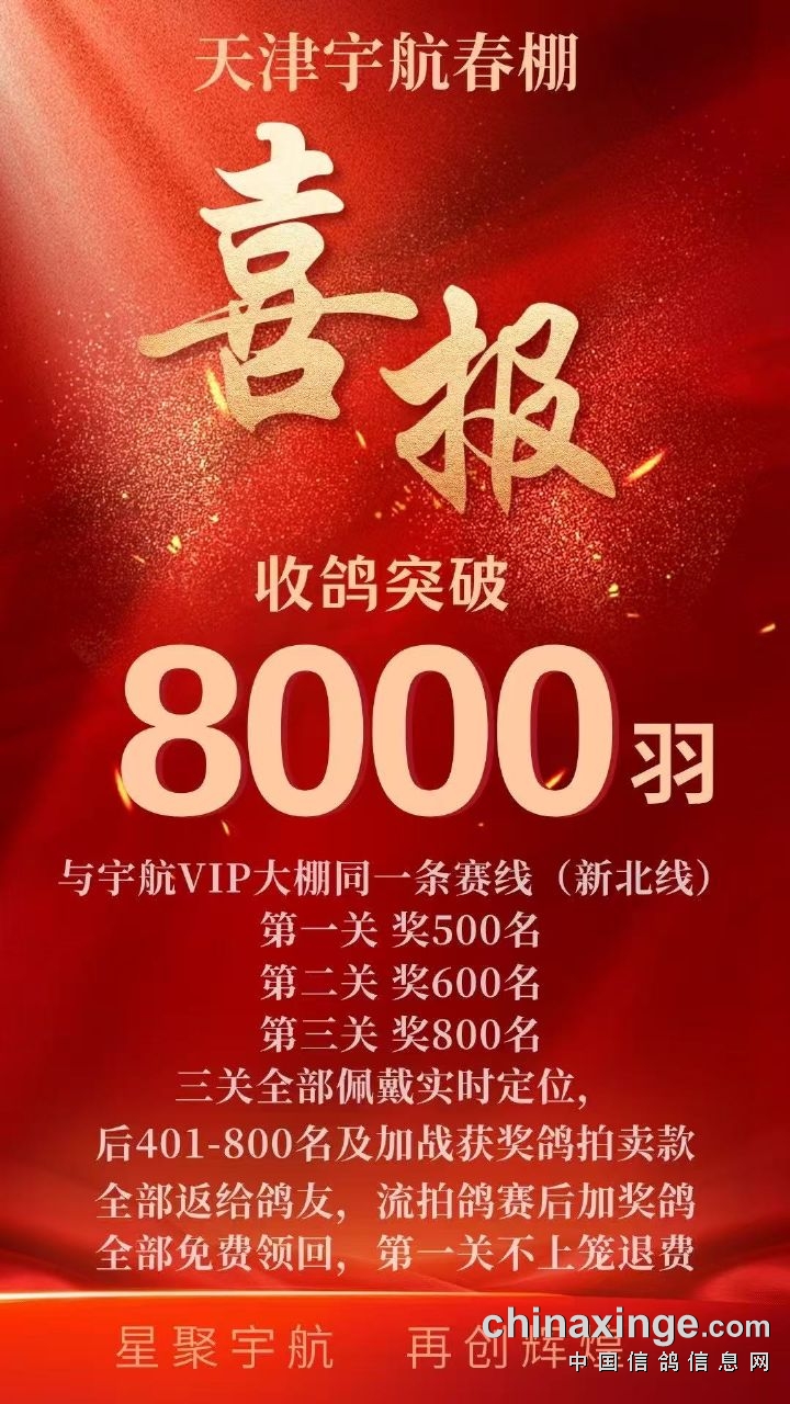 天津宇航春棚(喜报)收鸽突破8000羽!