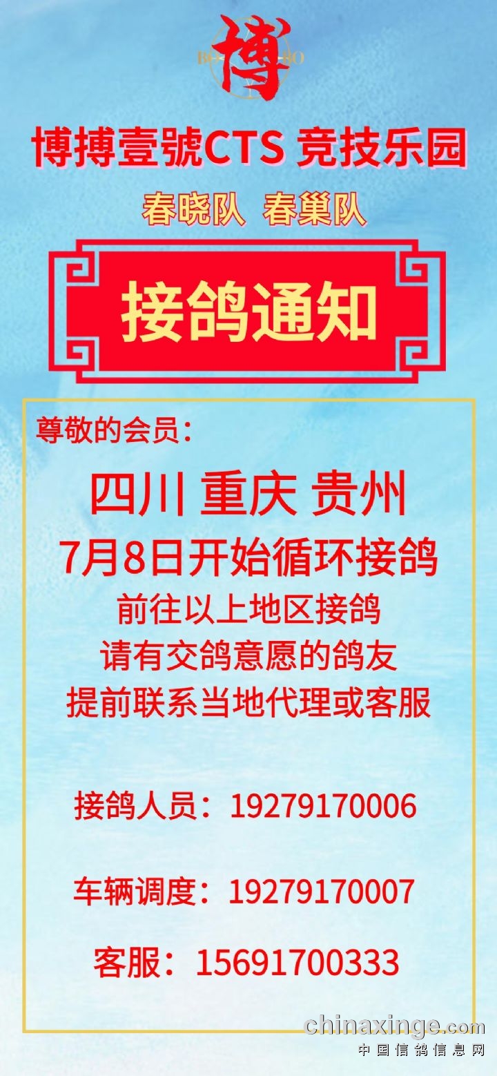博搏壹號春晓队四川、重庆、贵州7月8日开始循环接鸽公告