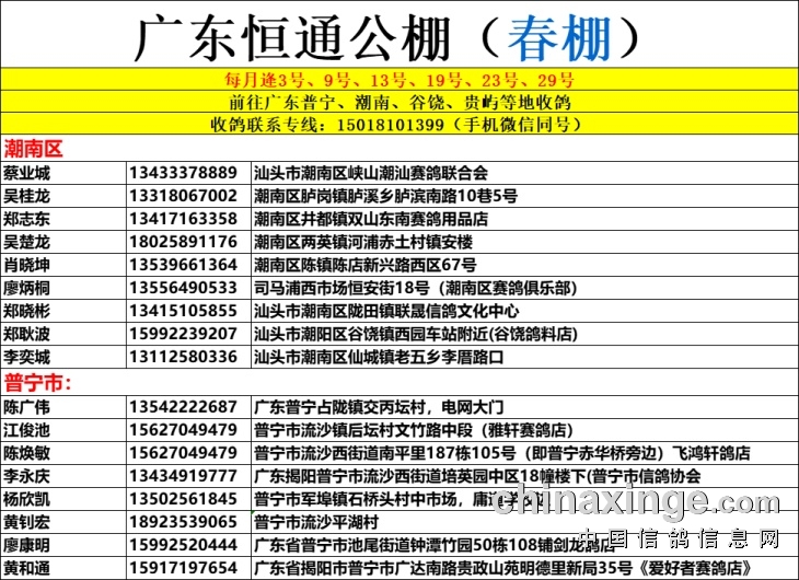 尊敬的鸽友,大家好!广东恒通春棚定于