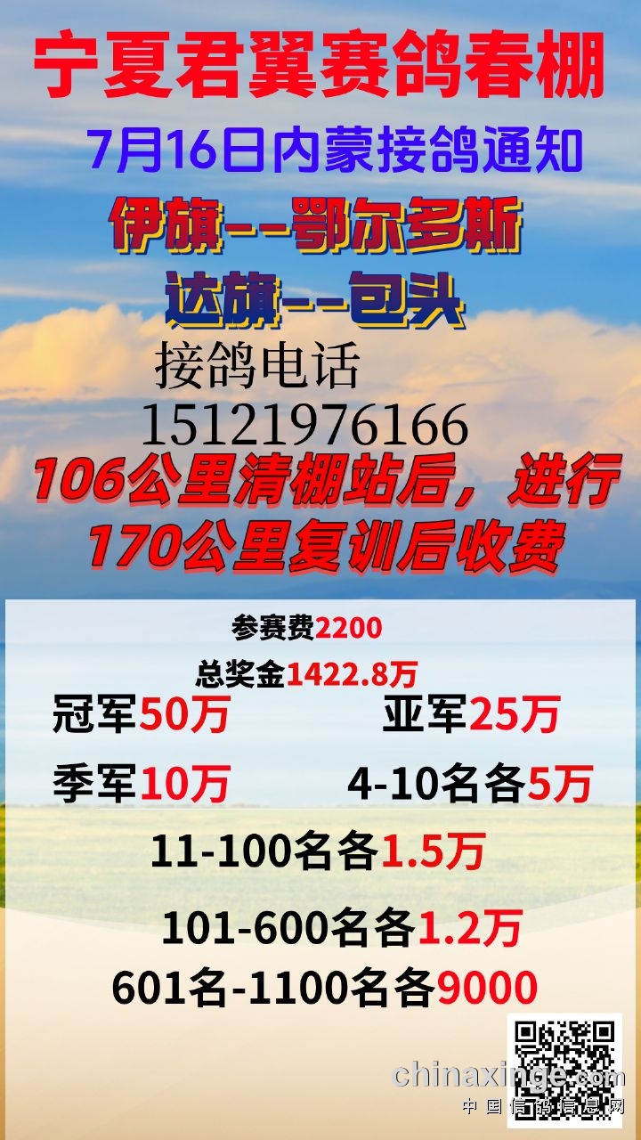 宁夏君翼赛鸽公棚(春棚)7月16日接鸽路线