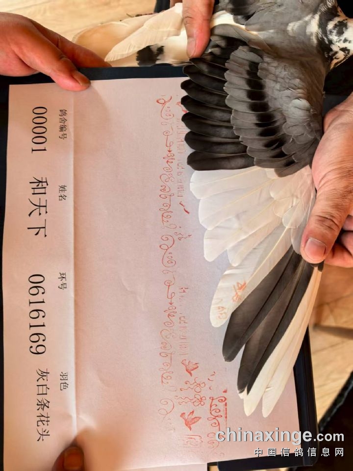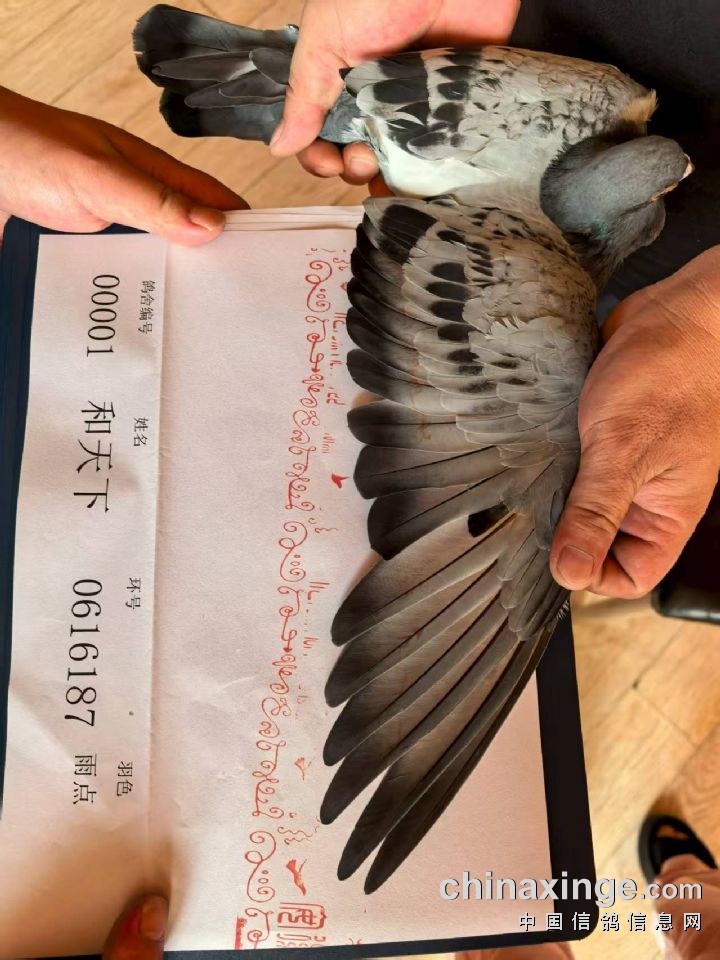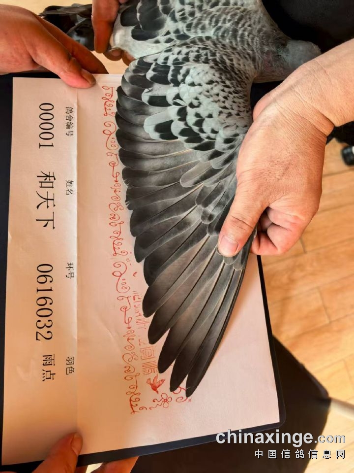 00001-和天下,拿环200枚,已注册200羽。今日抽检3羽,均合格。