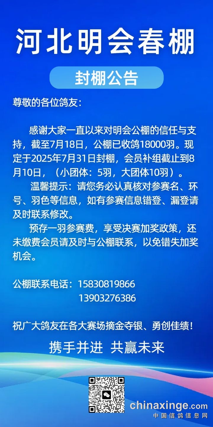 河北明会春棚100公里更改羽色清单