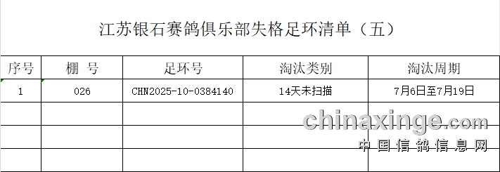 2025年江苏银石赛鸽俱乐部失格足环清单 (五)