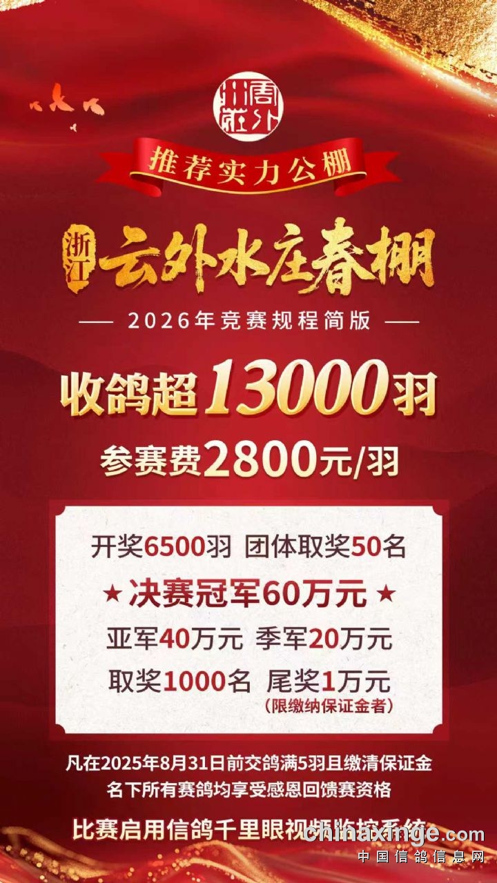 2026(春)浙江云外水庄赛鸽中心感恩回馈赛
