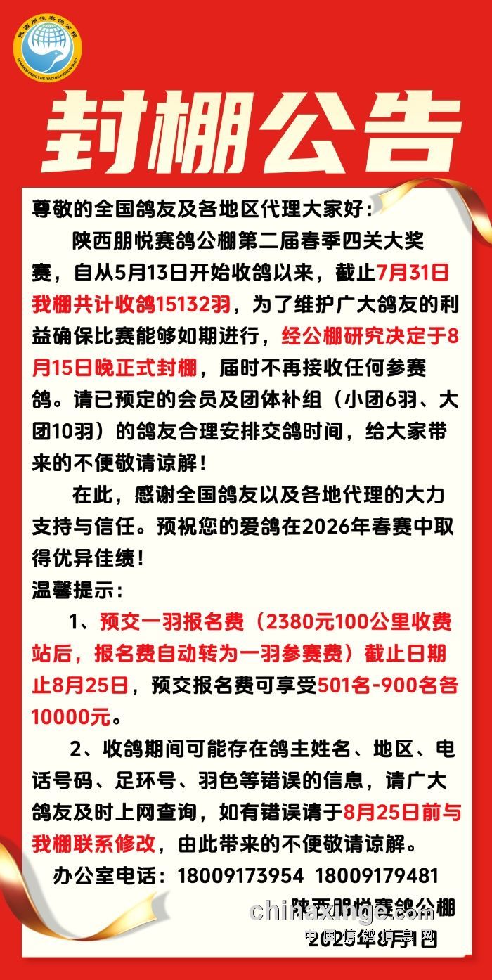陕西朋悦春棚祝全国鸽友国庆快乐、中秋安康!