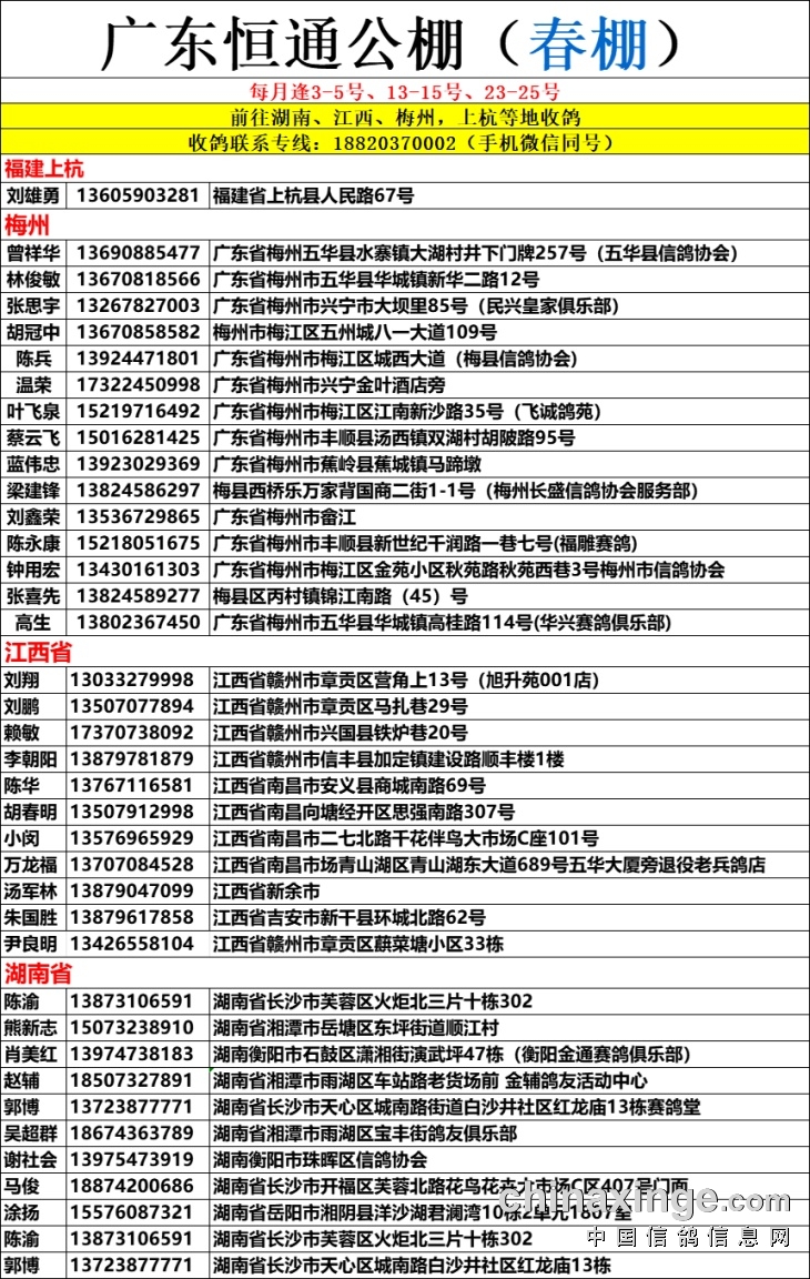 尊敬的鸽友,大家好!广东恒通春棚定于
