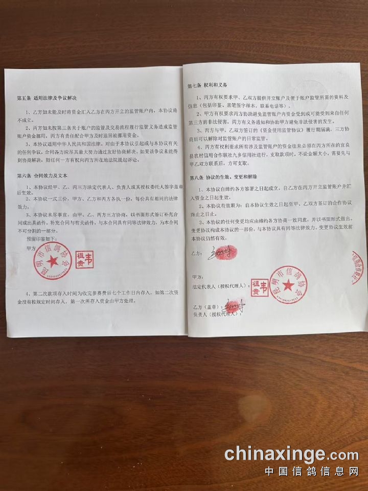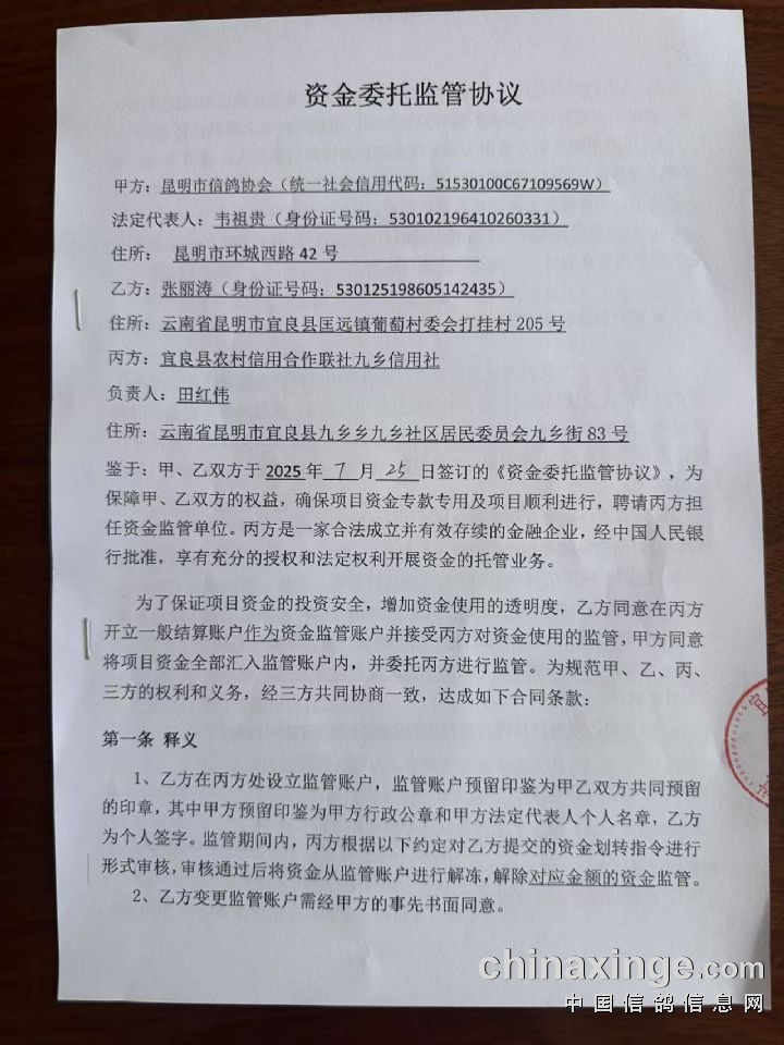 宜良勝利飞翔公棚 已按中鸽协规定将总奖金30%存入银行冻结监管