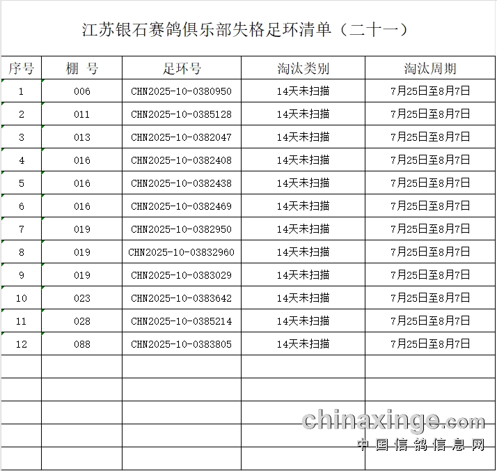 2025年江苏银石赛鸽俱乐部失格足环清单 (二十一)