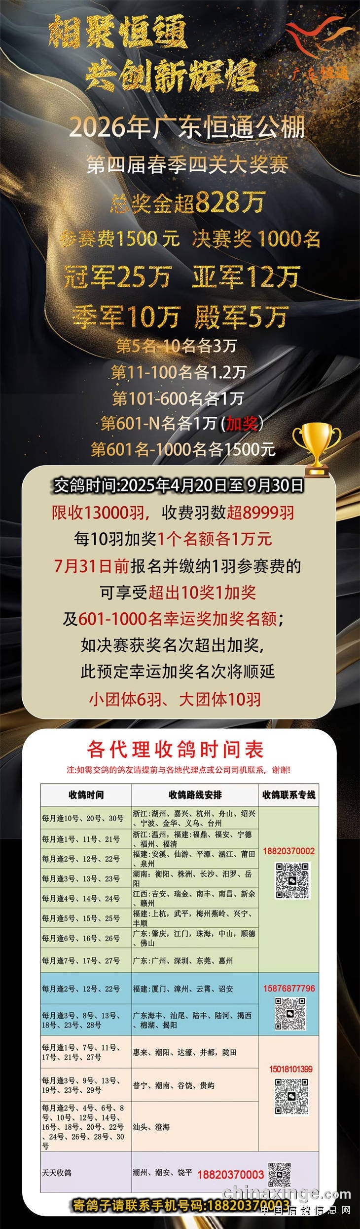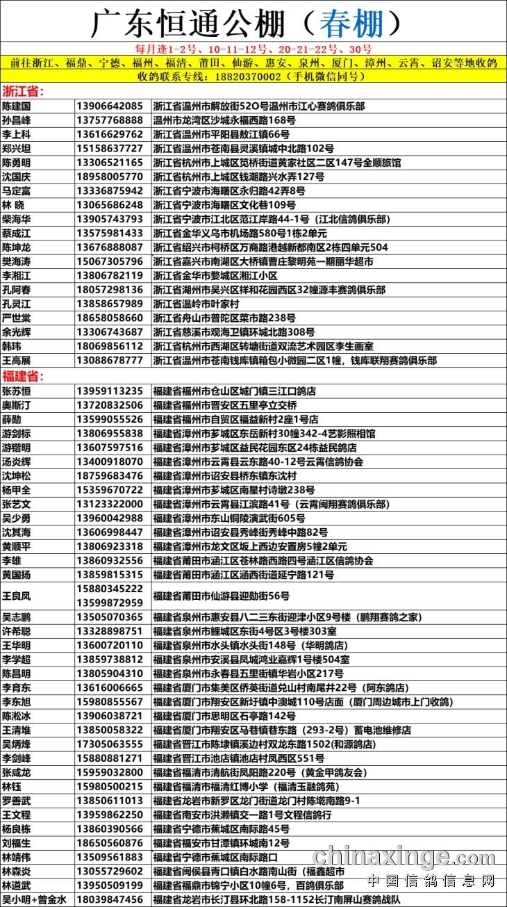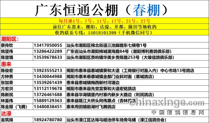 | 尊敬的鸽友,大家好!广东恒通(春)棚定于